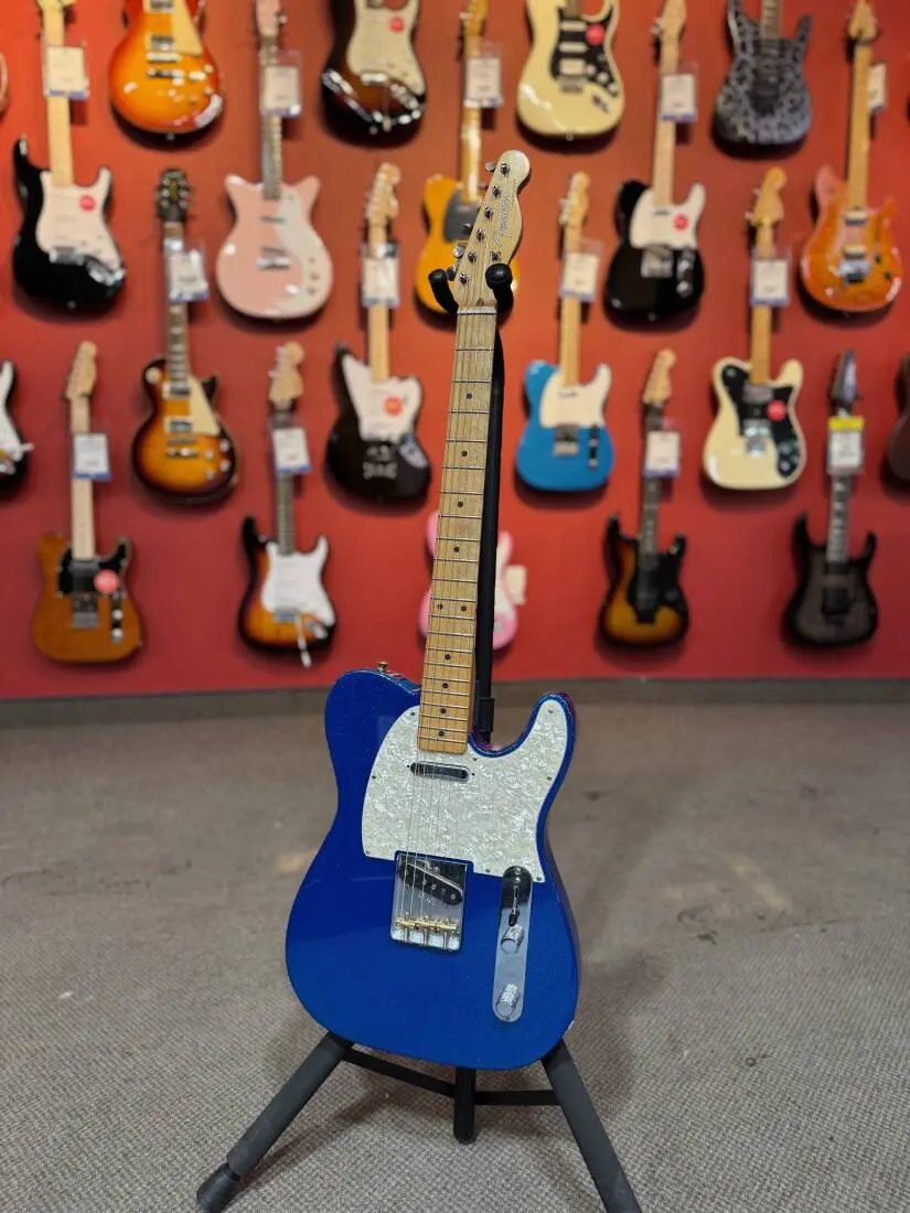 The J Mascis Telecaster® recreates J's favourite guitar, an original 1958 top-loader Tele®, with which he recorded most of his lead work throughout his career. Features include a Dazzling Blue Sparkle finish, mirrored chrome pickguard, custom J Mascis Telecaster pickups, top-loader bridge and Road Worn® maple neck and hardware.