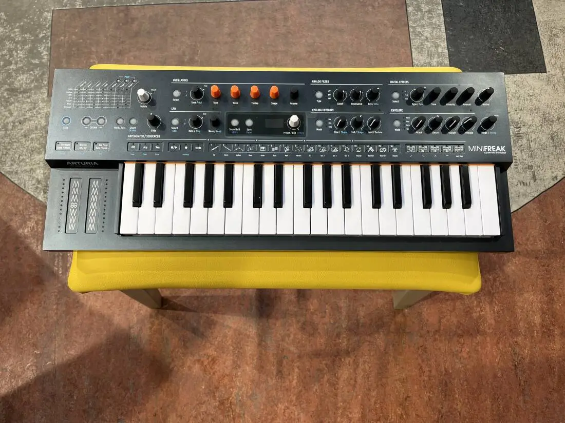 MiniFreak is a 6-voice polyphonic hybrid keyboard that fuses two digital sound engines with analog filters, outside-the-box sequencing, and instant-access modulation in a playful, curious, and sometimes unpredictable way. MiniFreak encourages musicians to escape the ordinary and explore the unconventional with a 37-note velocity-sensitive keybed with aftertouch, weave intricate evolving performances with multiple modulation lanes, and discover endless sweet spots with a built-in digital FX engine - a wildly creative experience.