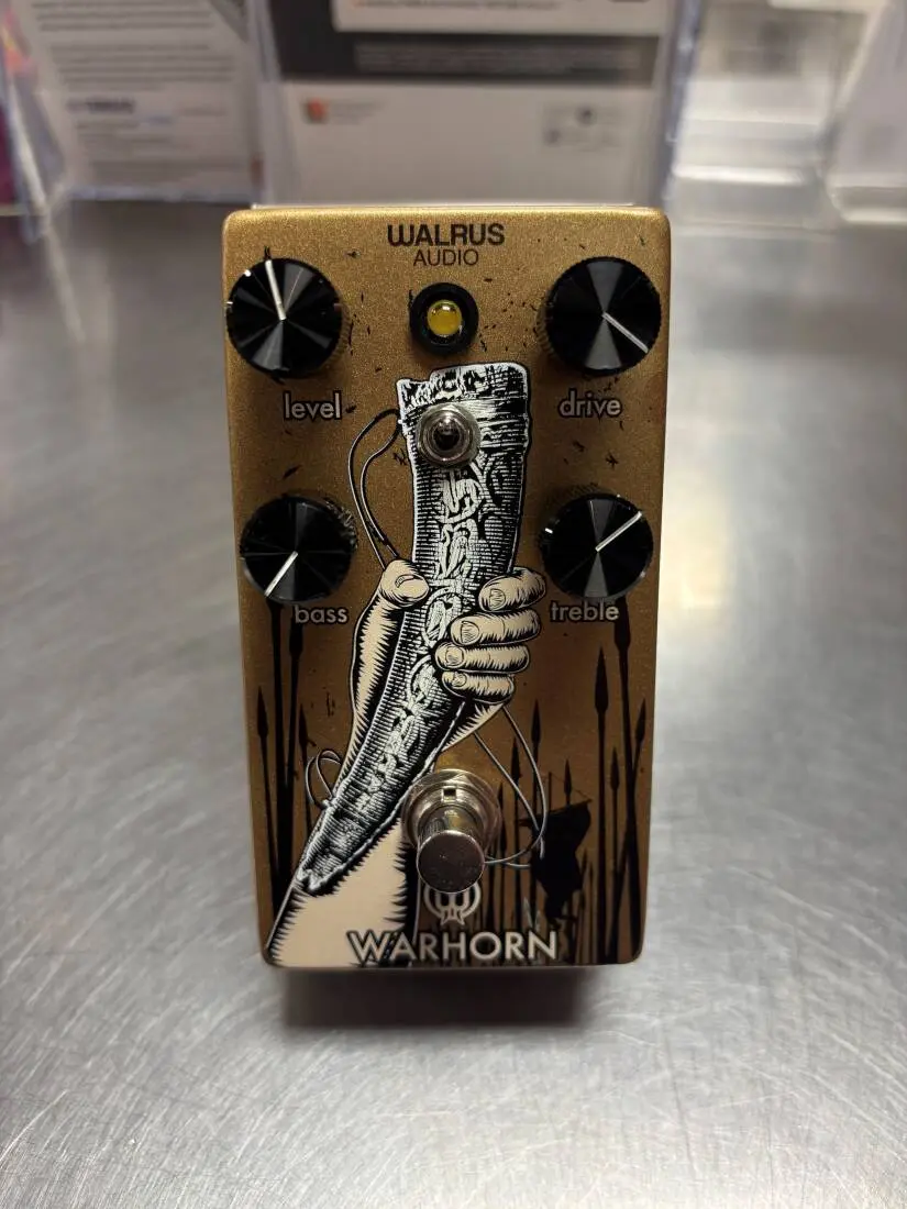 The Warhorn is a mid-range, transparent overdrive pedal that's capable of punchy rhythm, to searing Texas Blues leads. For added versatility, the pedal features a toggle switch that provides two flavors of clipping. The up position is a more compressed, symmetrically clipped tone, and the down position is an asymmetric, more open and organic sound. It includes Level, Drive, Bass and Treble controls providing a large range of tweaking and shaping options for your original tone.