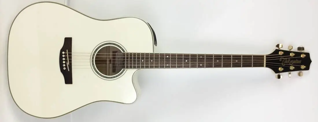 Maple back and sides are the foundation of this silky sounding guitar in Takamine's high-value G-Series. Finished in elegant gloss pearl white, this dreadnought guitar features ivoroid binding over the body, fingerboard, and headstock. Touched with gold hardware, pearl dot inlays, and a beautiful abalone rosette, this guitar exemplifies elegance and striking simplicity.