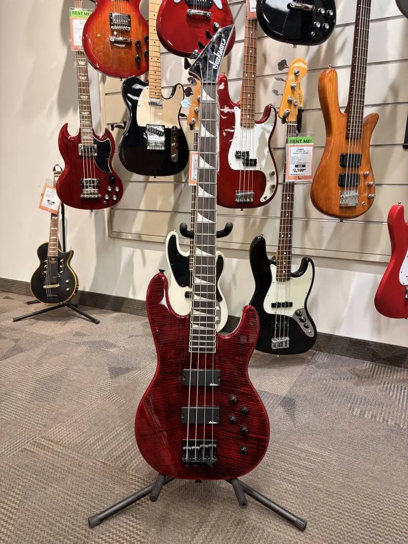 The heart of this beast is a pair of Jackson® High Output Humbucking Bass pickups mated to an active 3-band EQ circuit, adding punch, cut, rumble or grunt to your sound - shaping it with razor-sharp precision before it ever hits an amplifier. A Jackson HiMass bridge enhances note attack and sustain without altering your carefully crafted tone while the sealed die-cast tuning machines keep the strings in tune, no matter how hard you dig into them. The one-piece neck-through-body design generates formidable sustain while the Speed Neck contour and 12"-16" compound radius rosewood fingerboard make for lightning-fast playability.
