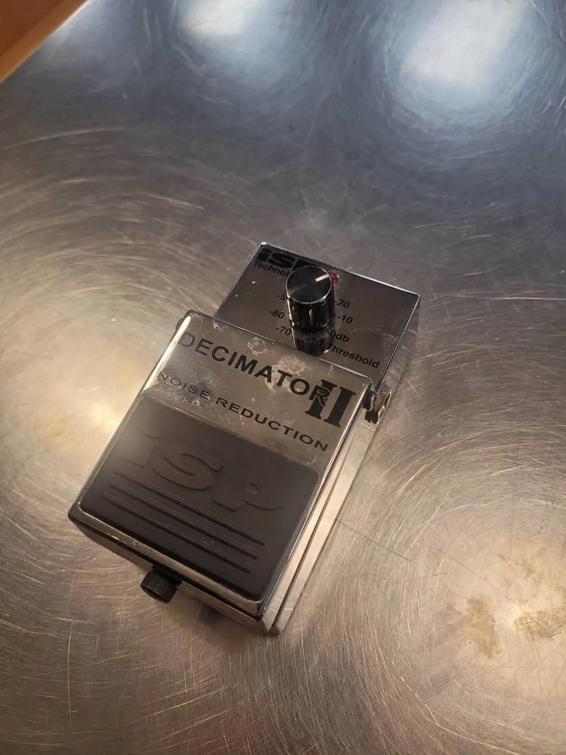 The new Decimator II and Decimator G String II now include a LINK IN and LINK OUT allowing two pedals to be linked via a common 1/8 inch Tip/Sleeve or Tip/Ring/Sleeve phone cord allowing both pedals noise reduction signal processing circuits to track the direct instrument input. With two Decimator II pedals linked the guitarist will get close to the same level of performance available in our professional Decimator ProRack G system in pedal form. This will now allow players to use one block of Decimator between the guitar and input of the amplifier, a second in the effects loop, use dual preamps in a system with a Decimator II after each pre-amp, or implement true stereo noise reduction systems using this link connection. Using the LINK function between two pedals allows a number of options. By using a standard Decimator II between the guitar and the input of the guitar rig and a second standard Decimator II inserted into the effects loop, the player can achieve the same basic performance of the professional Decimator ProRack G. The guitarist can also use a Decimator G String II at the front end of the system and build a true stereo noise reduction system by linking a standard Decimator Il pedal. This allows two totally independent channels of Decimator Noise Reduction, with separate inputs and outputs, to be inserted after a stereo Pre-amp or connected in a stereo guitar rig.