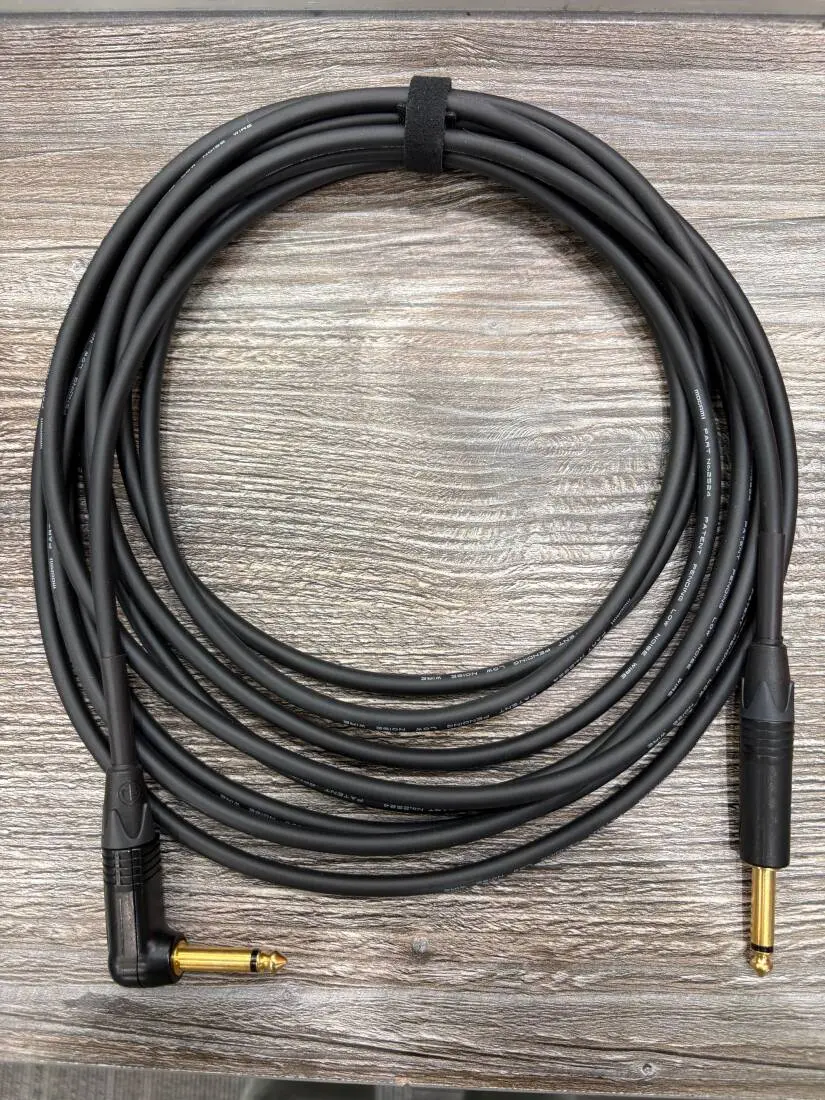 A high-definition instrument cable, Gold Instrument R is for guitar players who prefer a 90-degree connection on one end. This high clarity cable uses quality 1/4" connectors and carbon impregnated PVC to provide an additional shield layer to eliminate any handling noise.
