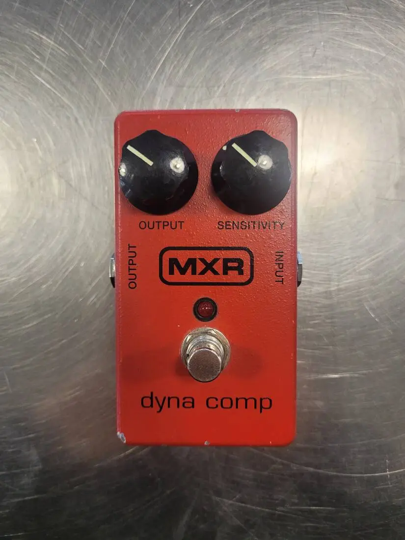 The Dyna Comp is a compressor that lets you set a maximum output level and the sensitivity at which it kicks in. This device can produce that percussive, clicky sound on a clean guitar that you've heard on so many pop hits. It can also even out the volume of sustained tones for mellow lead work, Power: Single 9-volt battery or Dunlop ECB-003 AC Adapter - Controls: Footswitch toggles effect on/bypass (red LED indicates on) Output knob sets compressed (attenuated) output level Sensitivity knob sets compression ratio (highest sensitivity is maximum compression)