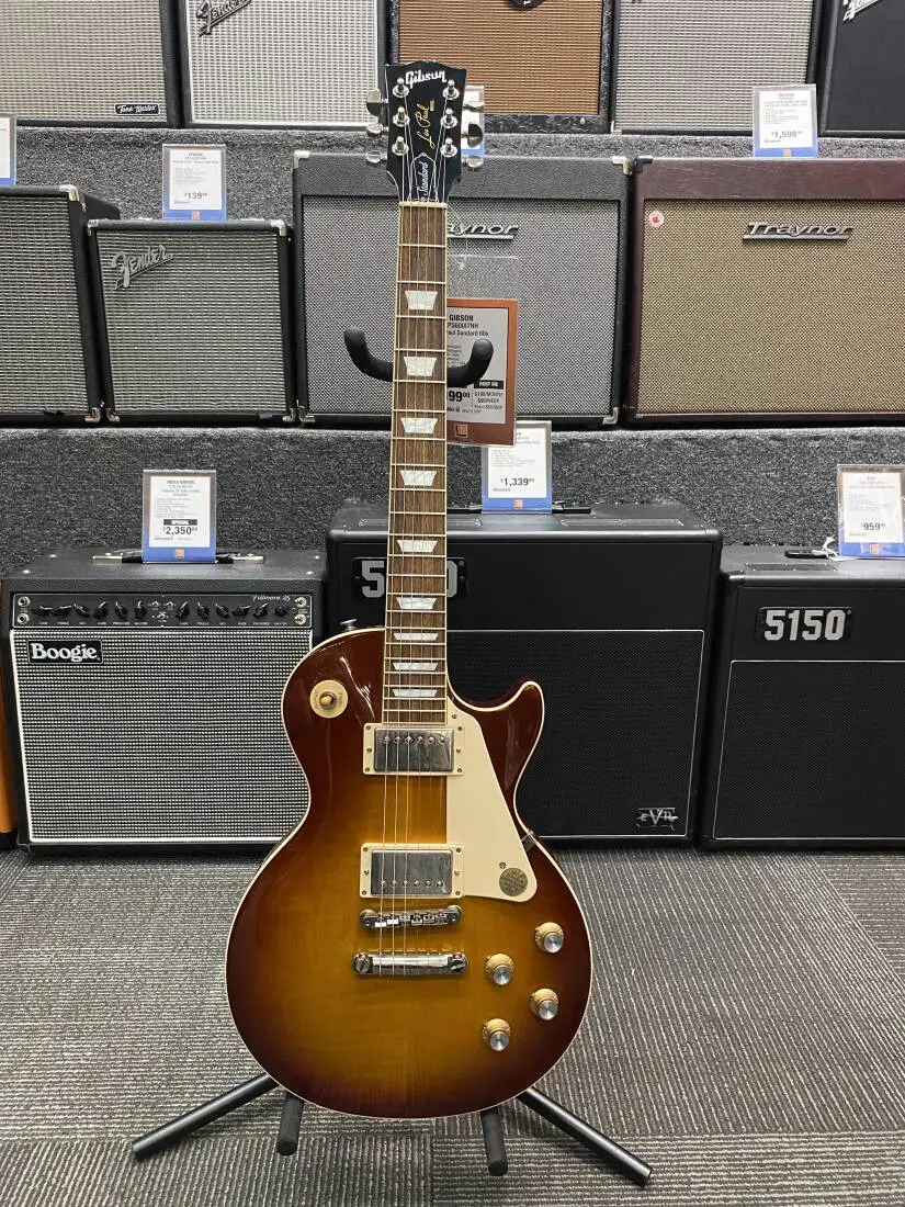 The new Les Paul Standard returns to the classic design that made it relevant, played and loved - shaping sound across generations and genres of music. It pays tribute to Gibson's Golden Era of innovation and brings authenticity back to life. The Les Paul Standard 60's has a solid mahogany body with an AA figured maple top, and a slim taper 60's-style mahogany neck with a rosewood fingerboard and trapezoid inlays. It's equipped with a classic-style Tune-O-Matic bridge, aluminum stop bar tailpiece, Grover Rotomatic "Kidney" tuners, and gold top hat knobs with silver reflectors. The Burstbucker 61R (neck) Burstbucker 61T (bridge) pickups are loaded with AlNiCo V magnets, audio taper potentiometers and orange drop capacitors.