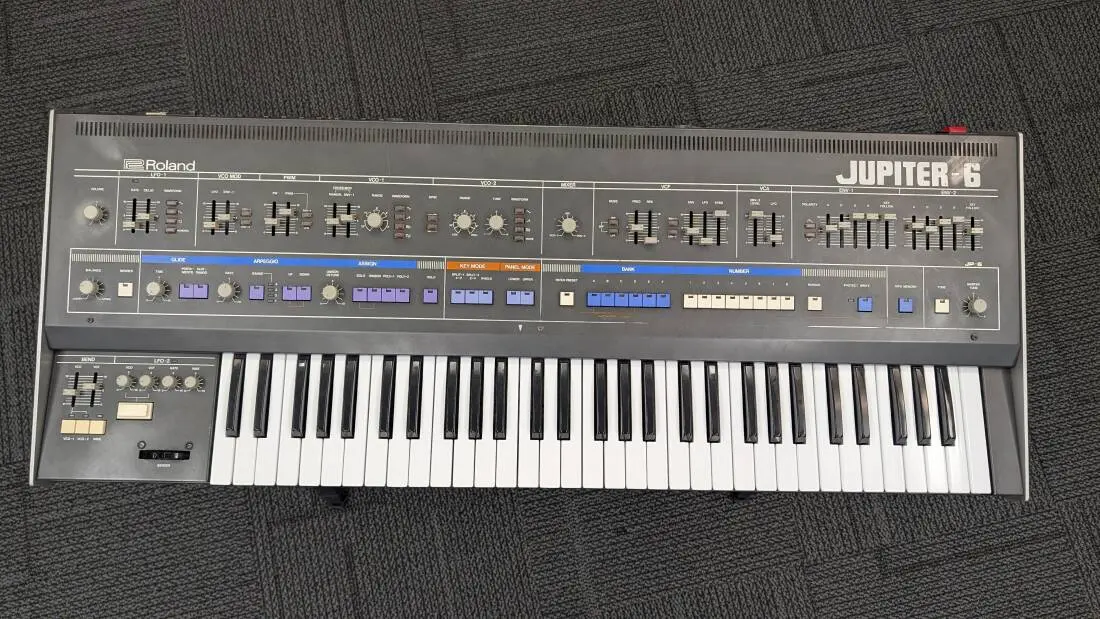 The Roland Jupiter-6 is a 6-voice polyphonic analog synthesizer introduced in 1983, renowned as a versatile "workhorse" with a distinct, aggressive, and sometimes "dystopian" character compared to its predecessor, the Jupiter-8. It features two VCOs (voltage-controlled oscillators) per voice, a versatile multimode filter, and was one of the first professional synthesizers to feature factory MIDI.