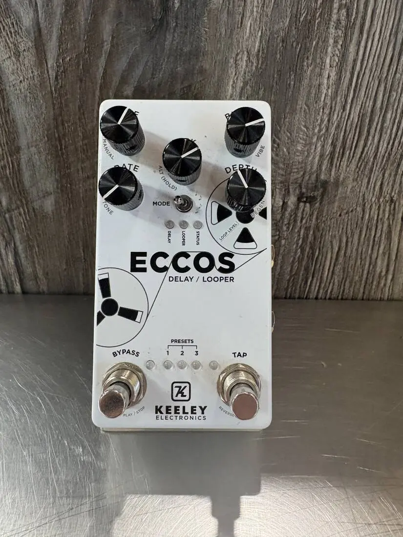 The ECCOS Delay Looper is based on a new stereo, flanged delay tone. Create beautiful sounding tape style delay lines and then spin them endless with the Looper! Designed to be at home in live pro rigs or bedroom studios while experimenting. The Keeley ECCOS is a delay-looper workstation with superb sound quality and abundant features.