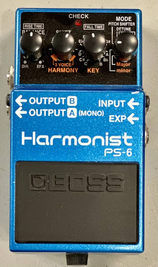 Meet the new BOSS harmonist, with four intelligent pitch-shift effects and three-voice harmony in one convenient unit. Among the effect modes are Harmony, Pitch Shifter, and Detune, plus the all-new Super Bend for authentic pedal-bending effects and wild three- and four-octave pitch sweeps. You can even control pitch with an optional expression pedal. The harmony function is fast and simple to use, and supports a variety of interval patterns. Its easy to create rich, three-voice harmony: choose a major or minor key, and set SHIFT to 3-VOICEthats it! The PS-6 Harmonist is an unbeatable combination of superior sound quality, ease of use, and powerful pitch effects, all under one hood.