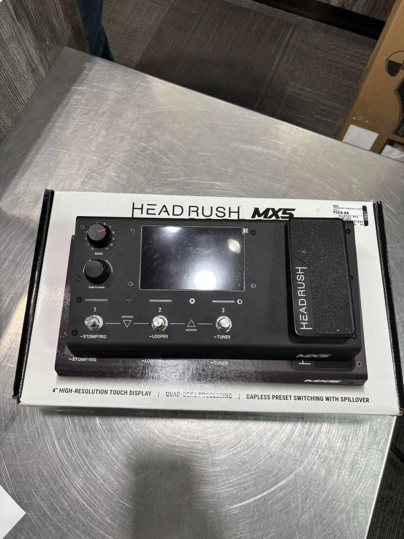 Super-compact yet loaded with all the power of HeadRush, MX5® is an incredibly easy to use and realistic-sounding guitar FX and amp modeler that's ideal for the desktop, the studio and the stage. Featuring a finely-tuned multi-core processor and 4-inch high-resolution touch display, the HeadRush MX5 makes tone building easy, letting you touch, swipe and drag-and-drop to instantly create and edit your perfect tone in an unprecedentedly realistic and intuitive way.