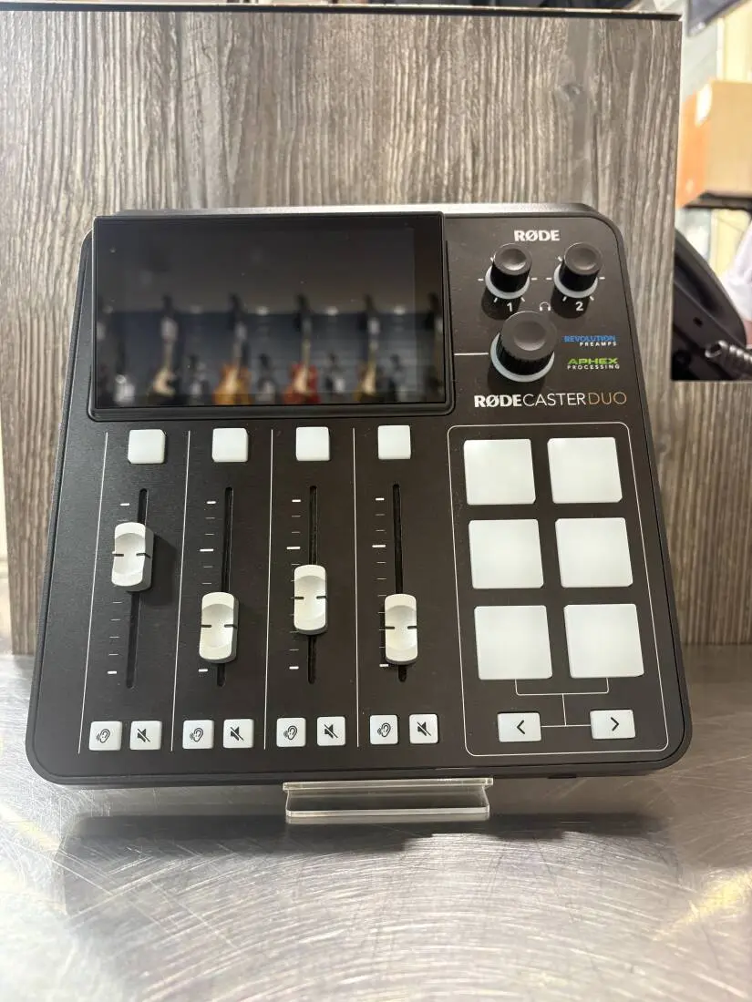 The RODECaster Duo is a compact and incredibly powerful all-in-one audio production solution for podcasters and content creators. It features two high-quality Neutrik® combo inputs for connecting microphones, instruments or line-level devices, a 3.5mm TRRS headset input, and integrated wireless receiver for connecting RODE wireless microphones, making it incredibly versatile. Ultra-low-noise, high-gain Revolution Preamps™ and studio-grade APHEX® audio processing delivers pristine audio quality, with dual USB-C interfaces for connecting two computers or mobile devices and Bluetooth connectivity for seamless phone call integration. The RODECaster Duo is fully customisable, with seven individually assignable channels and six programmable SMART pads for on-the-fly triggering of sound or voice FX and other actions.