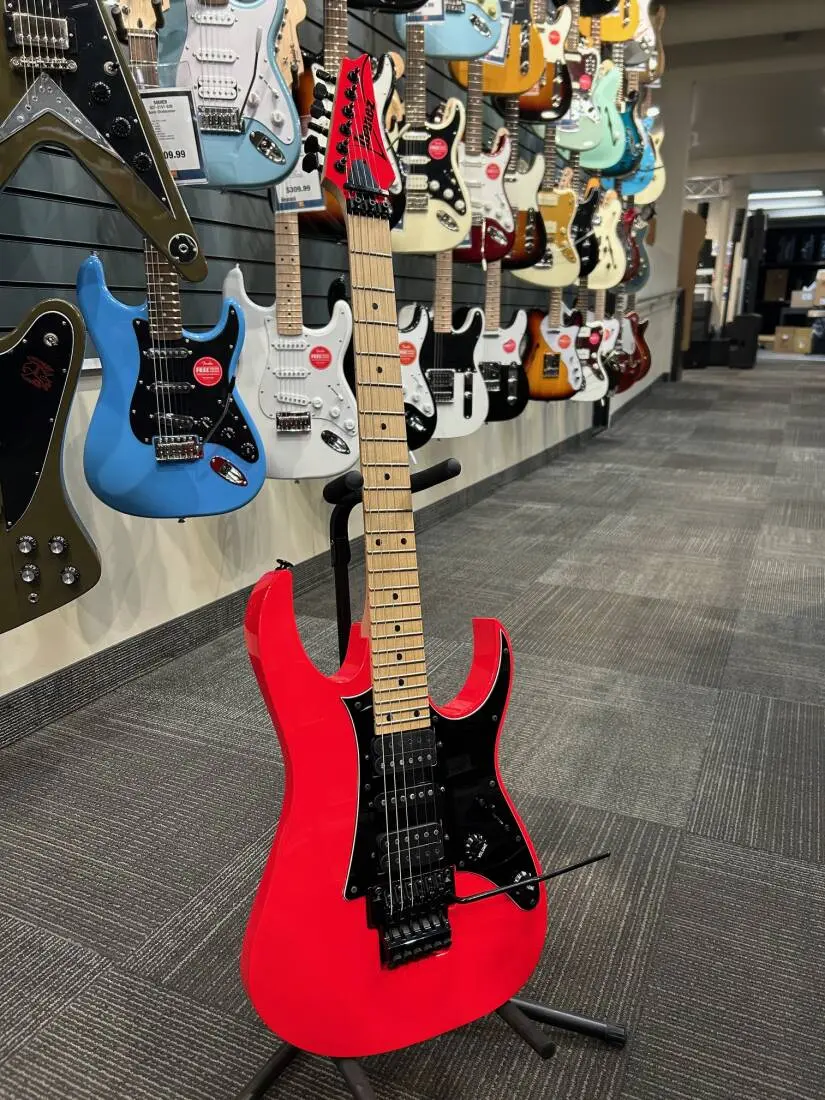 A prominent feature of the original RG is the ultra thin Super Wizard neck? constructed of five, glued, solid pieces of Maple/ Walnut for absolute rock solid stability. With the classic Edge tremolo bridge: the most extreme sonic acrobatics can be fearlessly performed with confidence that the guitar will effortlessly return to perfect tuning. The original Ibanez V7, S1, V8 pickups offer a wide range of sound and attack when combined with the 5-way pickup switch.