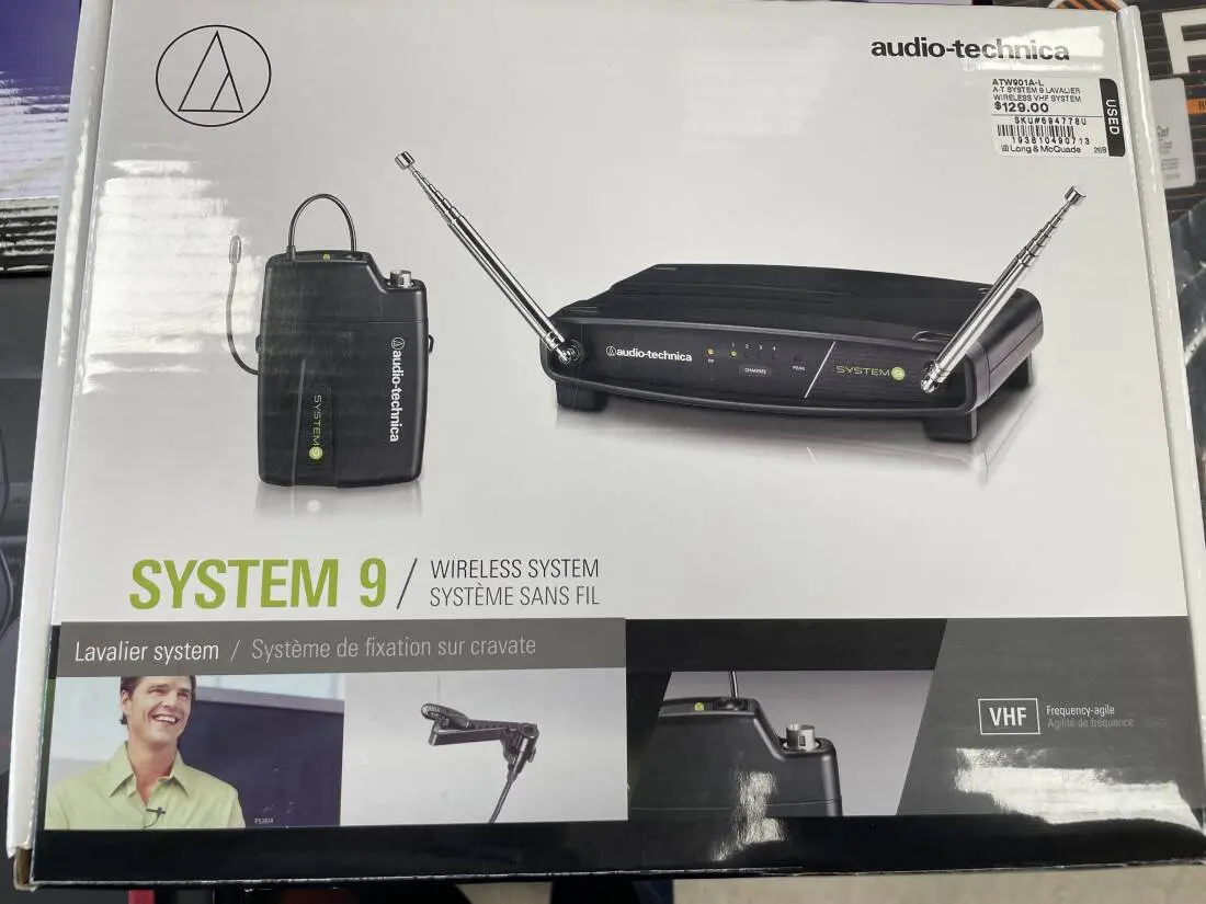 Audio-Technica's System 9 is a four-channel frequency-agile wireless system designed to provide rock-solid performance along with easy setup and clear, natural sound quality. Featuring sleek, stackable, contemporary styling, System 9 is available in various configurations. The system offers four compatible user-switchable VHF channels (169.505, 170.245, 171.045, and 171.905 MHz). Each System 9 configuration includes the ATW-R900a receiver and either a body-pack transmitter or handheld microphone/transmitter.