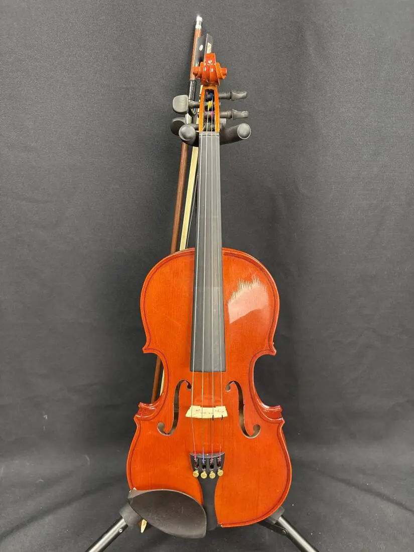 This is produced to satisfy the need for an entry level violin where economy is the main criteria. It features black finished hardwood pegs and fingerboard, and alloy tailpiece with four adjusters.