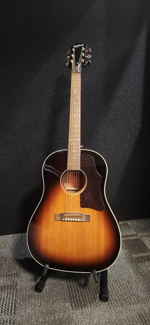 Epiphone and Slash are proud to present the Slash Collection. Part of the Inspired by Gibson Collection, it celebrates influential guitars Slash has used during his career, inspiring multiple generations of players around the world. Perfect for every stage and players of all levels, the Epiphone Slash J-45 features all solid wood construction with solid mahogany back and sides, a solid Sitka spruce top, Grover® Rotomatic® tuners, Graph Tech® TUSQ® nut and saddle, and Slash's personal touches including a C-shape neck profile, a flatter, more modern 16" fretboard radius plus an LR Baggs™ VTC preamp and under-saddle pickup for natural acoustic sound when plugged in. Exclusive to the Slash Collection are Slash's Skully signature drawing on the back of the headstock and Slash's signature on the truss rod cover. A custom hardshell case with Slash's "Skully" logo is also included.