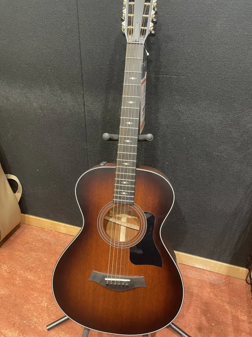 Taylor's V-Class bracing lends extra power, sustain and sweetness to this non-cutaway 12-fret Grand Concert, broadening its musical range. Blackwood back and sides produce a strong voice - even in small-body GC - with a pleasing midrange focus and a splash of top-end shimmer, while the mahogany top adds a touch of natural compression to smooth out the response from top to bottom.