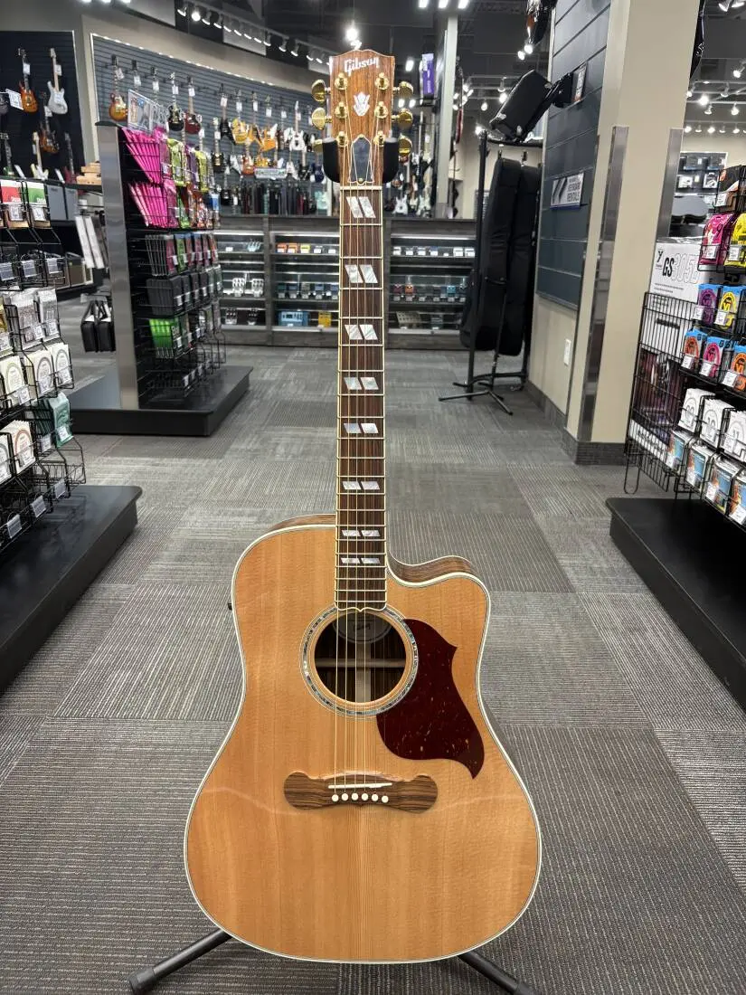 The Songwriter Studio Deluxe cutaway is easy to play and powerfully mellow to hear thanks to its Rosewood back and rims. Add a Fishman pickup system for plug-and-play in the studio or onstage and gold-plated Grover Rotomatic tuners and you have a combination that's hard to beat.