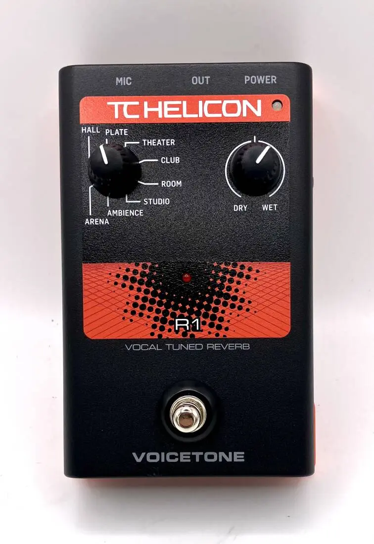 With reverb algorithms ported from TC-Helicon's flagship VoicePro processor, VoiceTone R1 is capable of surrounding your voice in a warm ambience. Initial reflections, decay time and tail tone have been optimally balanced in the eight pre-set reverb styles so you can find the perfect sonic pillow for each song.