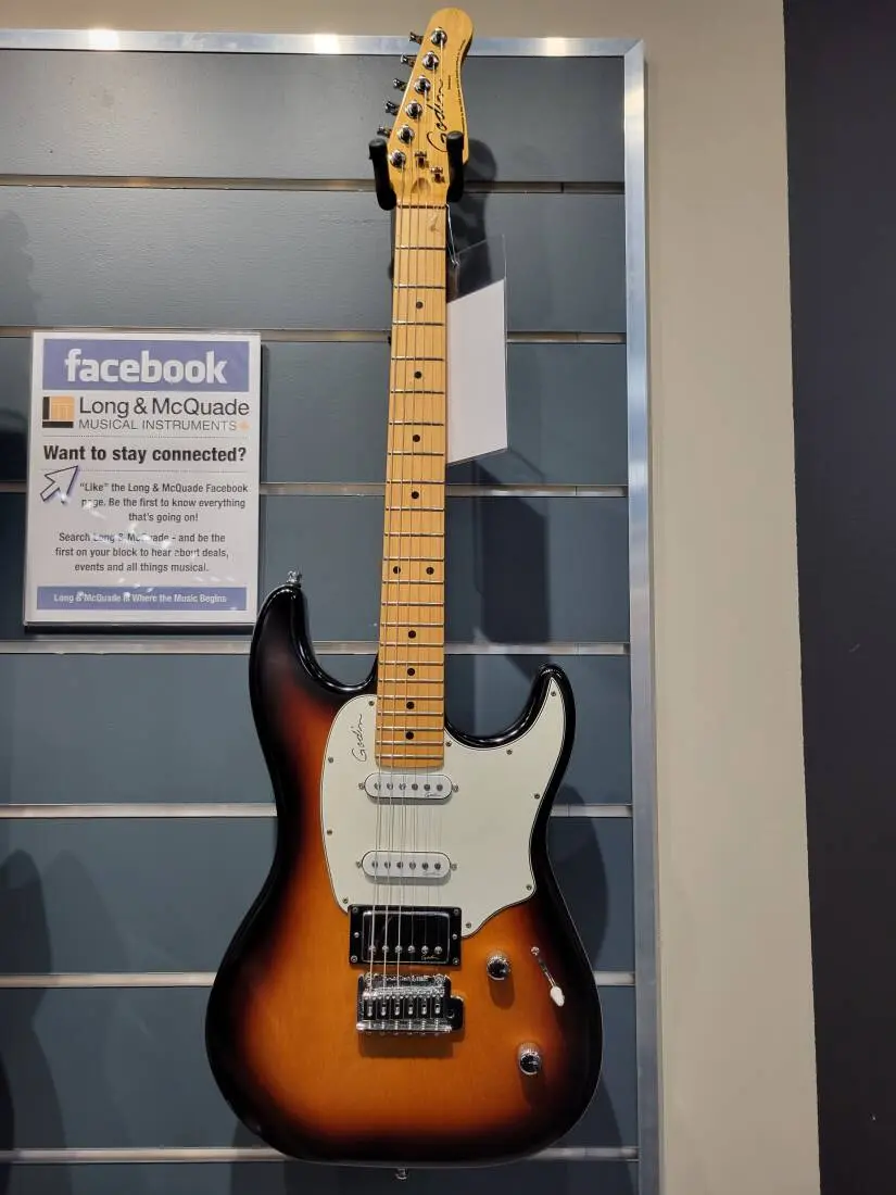 The Session features a rock maple neck with rosewood or maple fingerboard, Canadian Laurentian Basswood body, 2x Godin GS-1 single-coils housed in a vintage white pickguard and a Godin humbucker in the bridge, along with a 5-way switch, 1x volume and 1x push/pull tone knob that splits the humbucker.