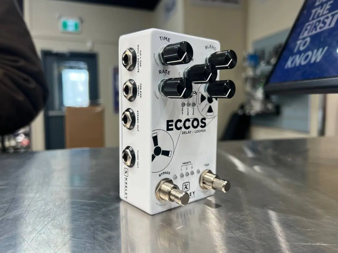 The ECCOS Delay Looper is based on a new stereo, flanged delay tone. Create beautiful sounding tape style delay lines and then spin them endless with the Looper! Designed to be at home in live pro rigs or bedroom studios while experimenting. The Keeley ECCOS is a delay-looper workstation with superb sound quality and abundant features.
