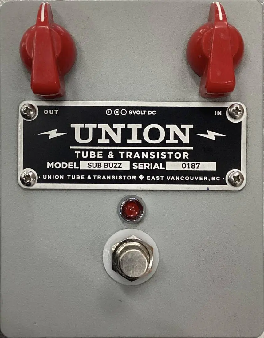 This Sub Buzz is a boutique pedal that is intended for bass and has a fuzz with parallel clean boost/blend. Controls are simple, Fuzz on the left and Clean on the right. Great vintage styling and looks made in East Vancouver, British Columbia, Canada by Union Tube and Transistor.