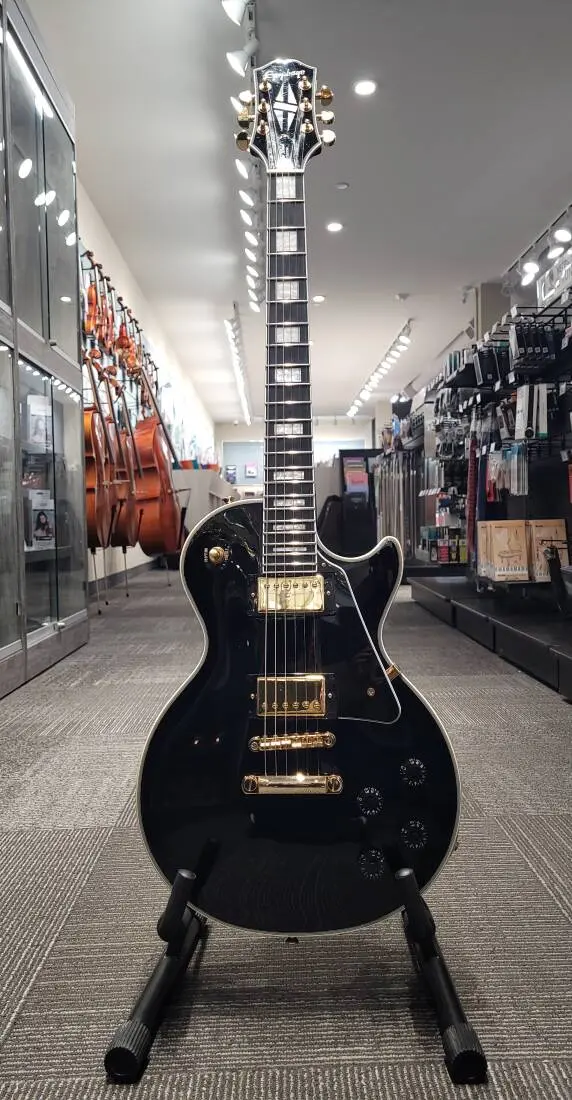 The new Les Paul Custom is part of Epiphones Inspired by Gibson Collection and honors the 1950s classic designed by Mr. Les Paul himself in 1954 as the "tuxedo" version of his groundbreaking solid body masterpiece. Featuring the traditional Custom bound all-mahogany body, 60s SlimTaper™ neck profile, ebony fingerboard with block inlays, gold Epiphone LockTone™ Tune-O-Matic™ bridge and Stop Bar tailpiece, a pair of critically acclaimed Epiphone ProBucker™ humbuckers, and Custom split-diamond inlay on the headstock. This Epiphone Inspired by Gibson model also has the 60s style Kalamazoo headstock, rolled neck for a comfortable feel, Graph Tech® NuBone® nut, era-appropriate wiring, and CTS® pots.