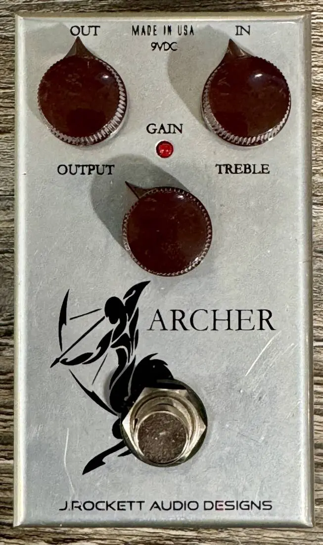From Rockett Pedals, "The Archer is sort of a 2 in one pedal. It can be used as just a clean boost by turning the gain all the way down. As you introduce gain it will attenuate the clean signal but there is a magical blend in between that you will find. Please experiment!!"