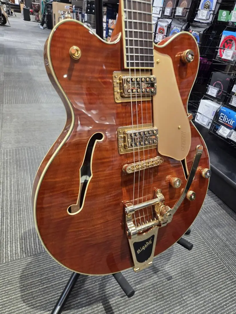 Gretsch Electromatic LTD Flame Okoume Broadkaster Double-Cut with Bigsby, Rosewood Fingerboard - Roundup Orange