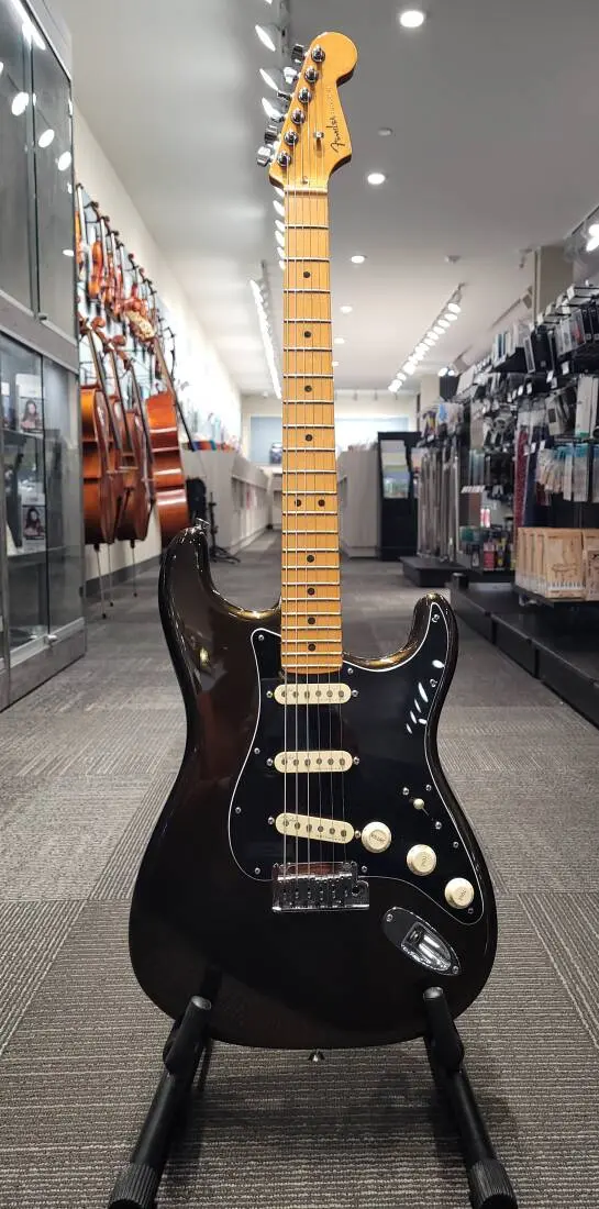 American Ultra is Fender's most advanced series of guitars and basses for discerning players who demand the ultimate in precision, performance and tone. The American Ultra Stratocaster features a unique "Modern D" neck profile with rolled fingerboard edges for hours of playing comfort, and the tapered neck heel allows easy access to the highest register. A speedy 10"-14" compound-radius fingerboard with 22 medium-jumbo frets means effortless and accurate soloing, while the Ultra Noiseless™ pickups and advanced wiring options provide endless tonal possibilities - without hum. This versatile, state-of-the-art instrument will inspire you to push your playing to new heights. Other features include sealed locking tuning machines, chrome hardware and bone nut. Includes premium molded hardshell case..