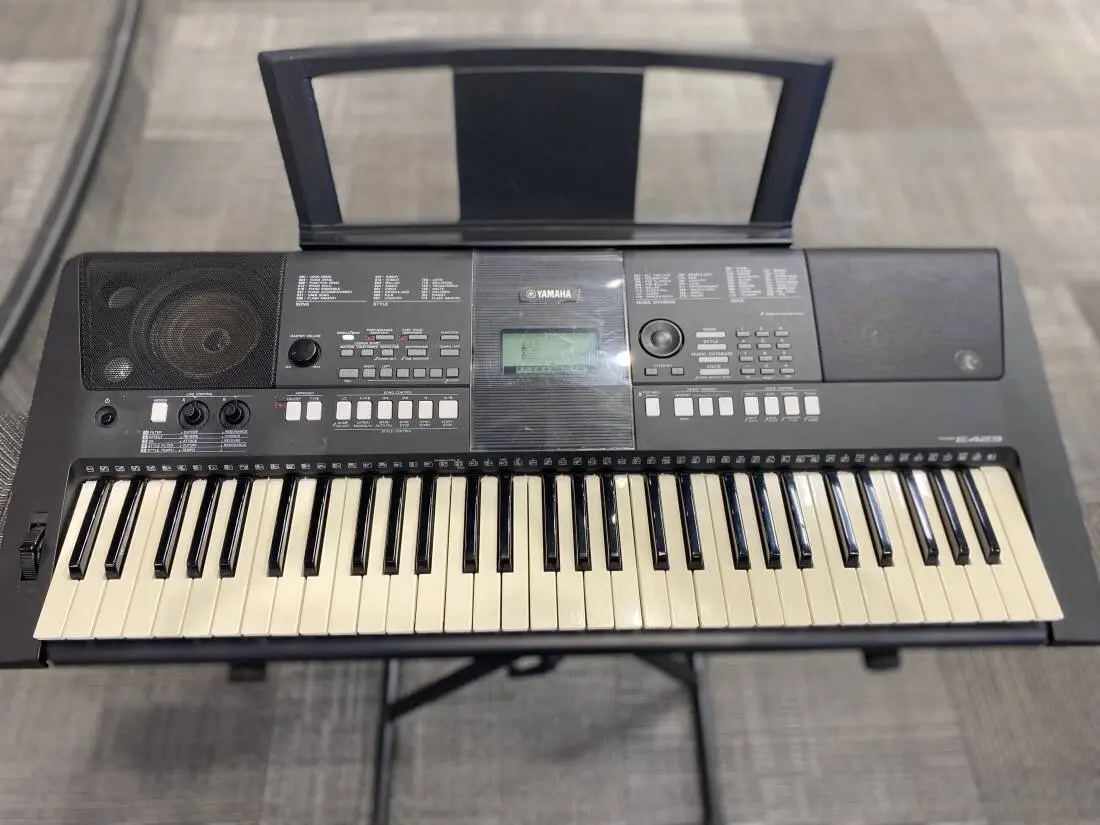 The PSR-E423 offers several innovative features. The basic features for learning to play -- like the Yamaha Portable Grand and Yamaha Education Suite -- and features for when it's time to perform, like synthesizer Control Knobs for real-time control of filter, effects, sound envelope and Style tempo. The Arpeggiator provides an expanded 150 different patterns and 40 arpeggio Voices. These easy-to-use professional features, along with its new black body, set this keyboard apart from others in its class.