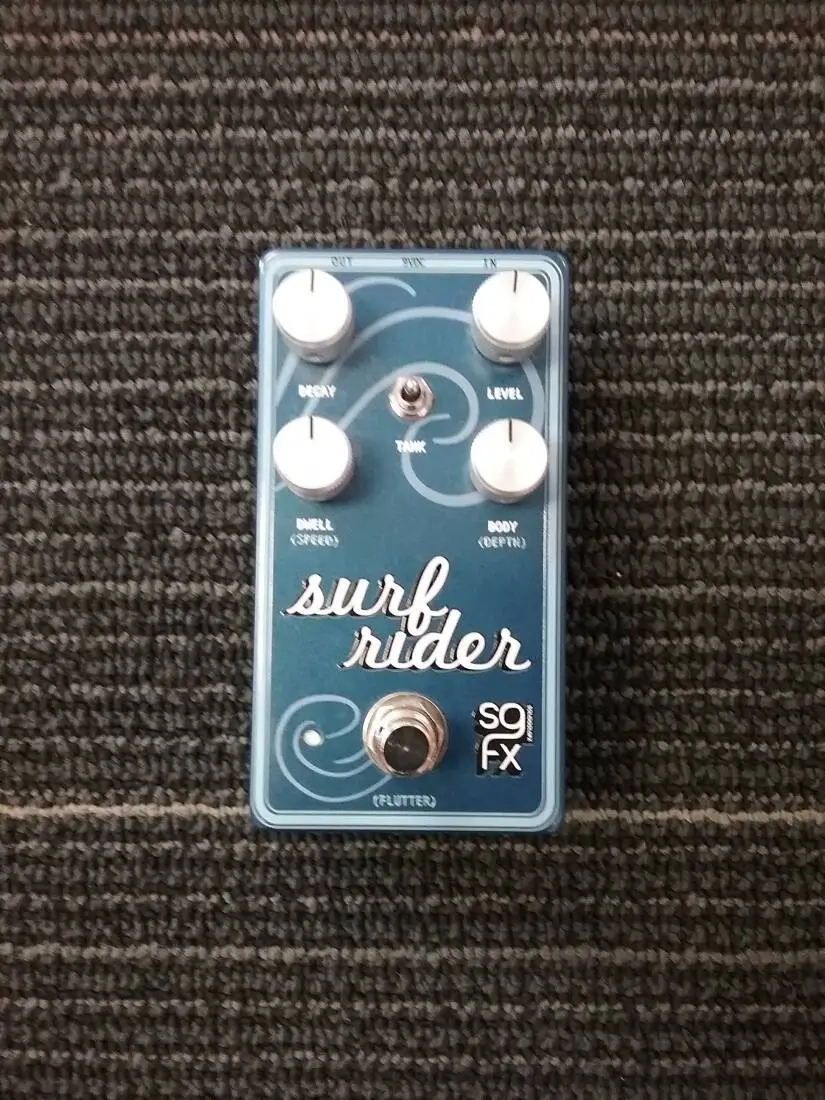 The Surf Rider IV brings the surf and sand in a ground-up redesign that packs 3 distinct spring tank emulations, based on some of Solid Gold's favorite vintage spring-laden pieces. The available reverb modes include a tight tank, based on Solid Gold's 60s Reverberocket, the classic splash of their early silver panel Super Reverb and the SGFX fantasy tank, with a slightly exaggerated drip and decay for when you want Misirlou to sound certifiably otherworldly. Housed in a compact package, with expanded controls and added features like soft-touch bypass switching with trails, selectable momentary or latching modulation and top-mounted jacks, the Surf Rider IV is guaranteed to satisfy like a cool breeze in the sweltering heat. So, plug in honey bunny, crank it up and get your Dick Dale on!