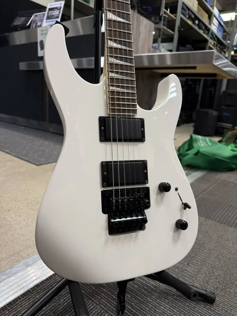 Active Jackson high-output humbucking pickups deliver well-balanced tone with tight bass, glassy mids and crunching highs. Explore this instrument's sonic palette with a three-way pickup blade switch and single volume and tone controls, and dive bomb at will with reliable tuning stability from the Jackson-branded Floyd Rose®-licensed double-locking tremolo bridge system.
