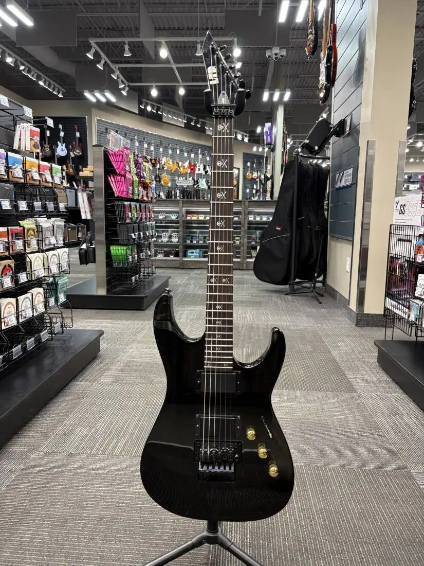 Even as the most affordable guitar in ESP's LTD Kirk Hammett Signature Series, the KH-202 is still completely ready to rock. For anyone who appreciates the influential leads and heavy riffs of Metallica's lead guitarist, the KH-202 will deliver. It features bolt-on construction, a basswood body, an extra-thin U-shaped maple neck, rosewood fingerboard with 24 extra-jumbo frets and Kirk's skull-and-bones inlays, and components that include a Floyd Rose Special bridge and a set of ESP Designed LH-301 pickups. Available in Black finish.