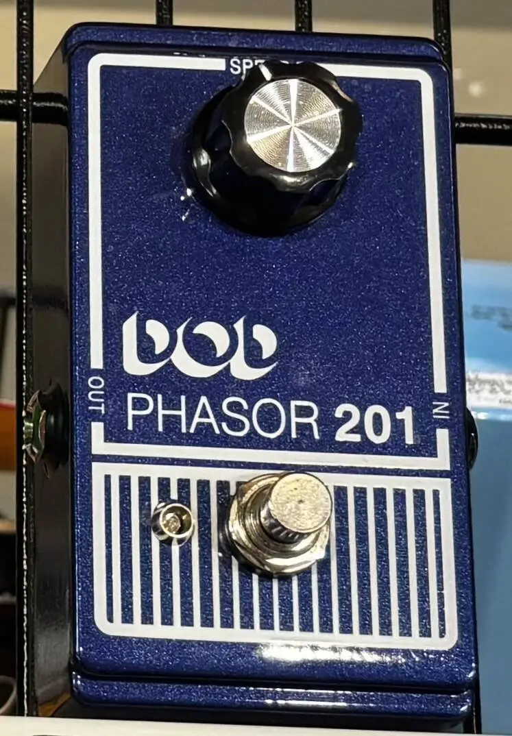 One of the first phaser effect pedals ever made, the original DOD Phasor 201, blazed the trail for all phaser pedals after it. The new DOD Phasor 201 (2013) brings the classic analog phaser effect driven by 40+ years of tone creating experience. The new 2013 DOD Phasor 201 is better than ever before with true bypass, a crisp blue LED indicator, and modern 9V DC power supply input. Redesigned with a lighter aluminum chassis, sleek blue metallic flake and flat black matte bottom paint job, the 2013 DOD Phasor 201 pedal is a refined take on classic phasing effects, with an incredible new look.