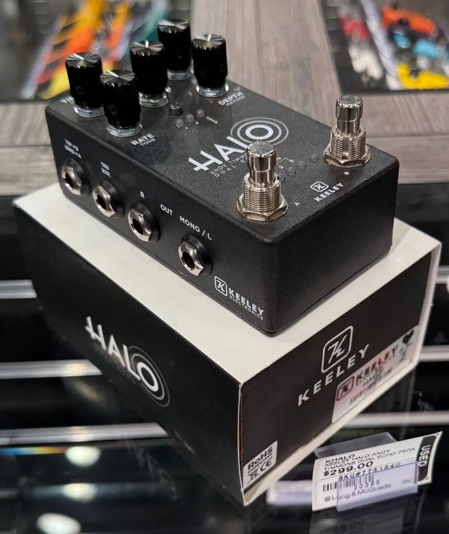 Andy Timmons' mysterious sounding "Halo" effect is a modulated dual echo sound that has long been kept a secret by the tone wizard himself. Andy spent decades combining and crafting the sounds you can now get from the HALO. Notes from the HALO dance rhythmically, almost creating a reverb diffusion.