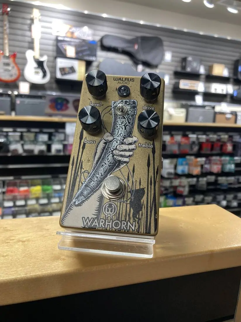 The Warhorn is a mid-range, transparent overdrive pedal that's capable of punchy rhythm, to searing Texas Blues leads. For added versatility, the pedal features a toggle switch that provides two flavors of clipping. The up position is a more compressed, symmetrically clipped tone, and the down position is an asymmetric, more open and organic sound. It includes Level, Drive, Bass and Treble controls providing a large range of tweaking and shaping options for your original tone.