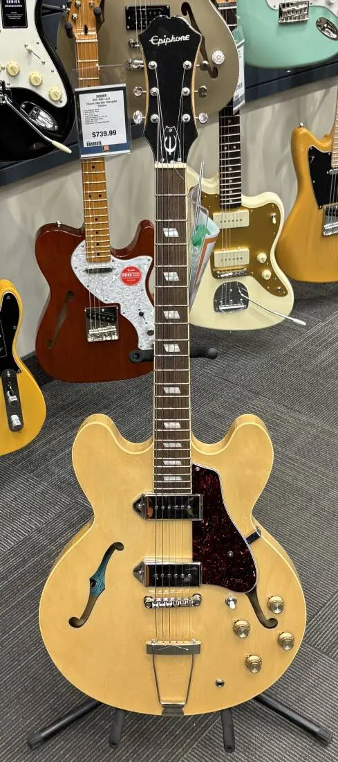 The Epiphone Casino Electric Guitar is the guitar that put Epiphone on the map. Ever since The Beatles purchased three Casino's back in 1964, this hollow Epi model has taken on a life of its own. Equipped with two, vintage P-90 single-coil pickups, the Casino still delivers those Beatlesque tones at a price every player can afford.