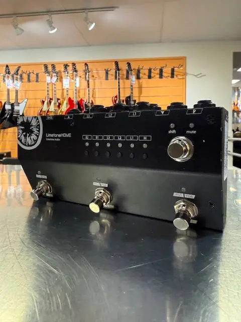 A programmable switcher with three loops. This switcher prioritizes sound quality by being non-buffered, minimizing changes in sound quality caused by connected effects, and achieving high-quality signal routing through carefully selected parts. By connecting the LimetoneBASE (sold separately) to the control terminal on the back with a TRS cable, you can control a total of 5 loops (3 + 2) all at once while saving space. In addition, the concepts of STORE and SAVE are eliminated; simply select the loop with the push switch and the settings will be stored. Each foot switch has its own hidden mode, and pressing the selected foot switch again will switch to the hidden mode. By storing a different setting on the hidden side than on the front side, you can step on the same switch again to turn on the booster to increase the volume or add a spatial effect. When combined with the shift function, you can program 12 settings (3 x 2 x 2) and easily switch between them.