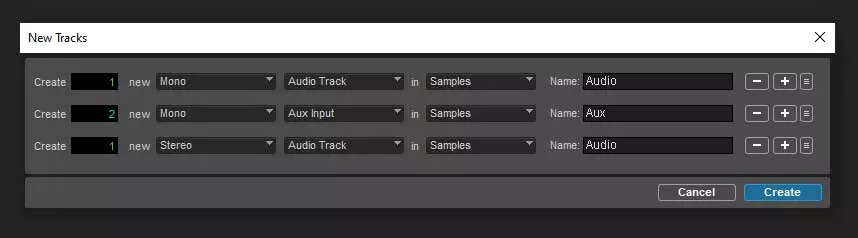 Figure B: ProTools New Track Dialog Box - Required Tracks.