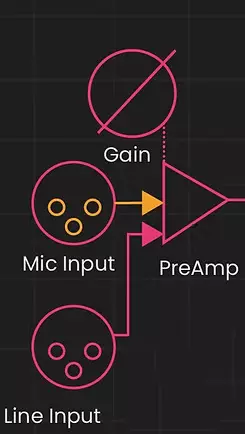Every sound begins at the input stage. I usually connect microphones or instruments through XLR or 1/4" TRS jacks on the mixer. If it’s a mic signal, it’s too weak on its own, so it goes straight into the mic preamp, which boosts it up to a workable level (line level).