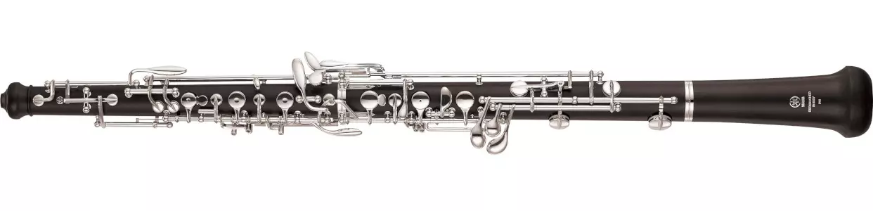 Similar to the oboe is the English Horn. While the Oboe plays in C, the English Horn is a longer instrument that plays in F (transposing). While Oboe reeds can attach directly to the instrument, the English Horn uses a bocal that you attach the reed to.
